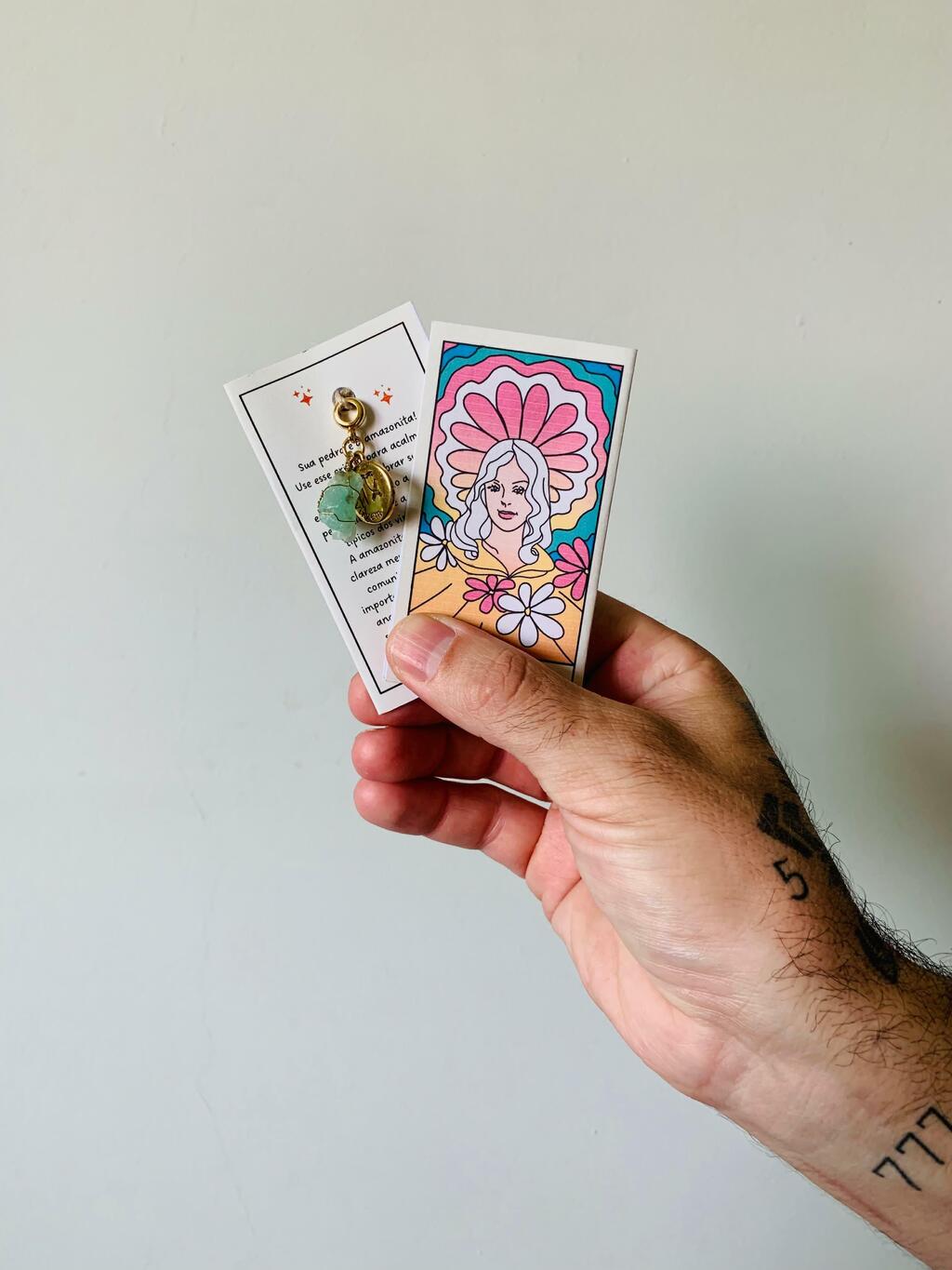 Ele acompanha a medalha do signo de Virgem e um cristal de Amazonita, pedra escolhida para Virgem. Este cristal é conhecido por suas propriedades de equilíbrio, clareza e criatividade. Ideal para os virginianos, a Amazonita ajuda a trazer clareza mental, fortalece a capacidade de tomar decisões e promove o equilíbrio emocional, auxiliando Virgem a se organizar e se expressar com mais criatividade.