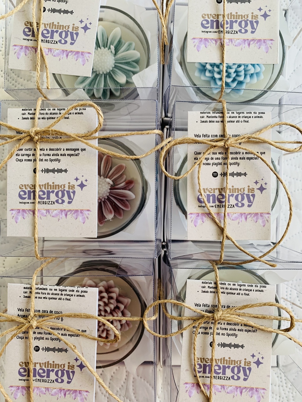 Após recebermos o seu pedido, entraremos em contato para que você possa escolher todos os detalhes que tornarão a sua vela ainda mais especial. Você poderá selecionar a cor da vela, a essência aromática e a arte da embalagem, para garantir que o presente esteja totalmente alinhado com o seu gosto ou o tema da ocasião. Temos uma variedade de essências, desde as mais clássicas e florais, até as mais exóticas e energizantes. Todos os itens dentro do mesmo pedido serão personalizáveis para manter a harmonia e o estilo que você deseja.