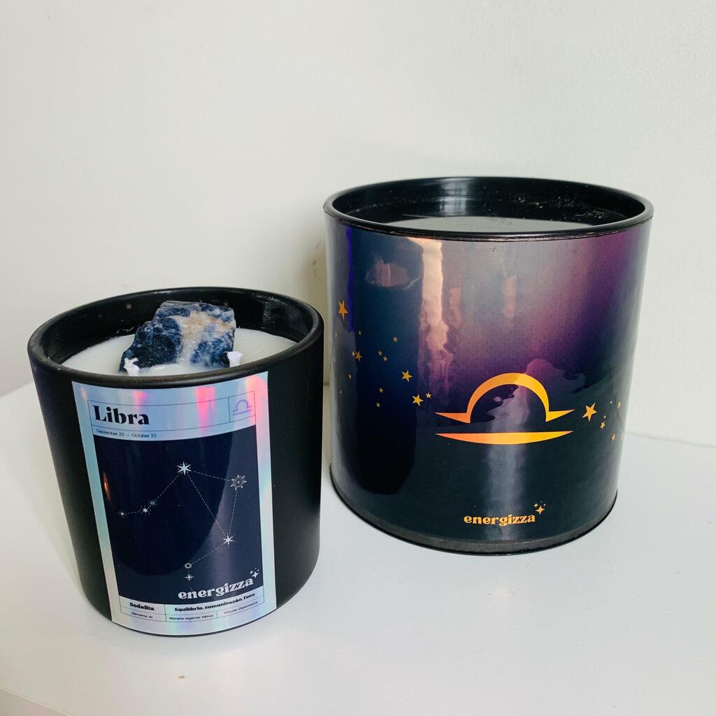 Na vela, você encontra uma sodalita, um cristal que ressoa diretamente com a energia de Libra. A sodalita traz harmonia interior, ajudando a acalmar a mente, promovendo a equilíbrio emocional e favorecendo a comunicação clara e assertiva nos relacionamentos.