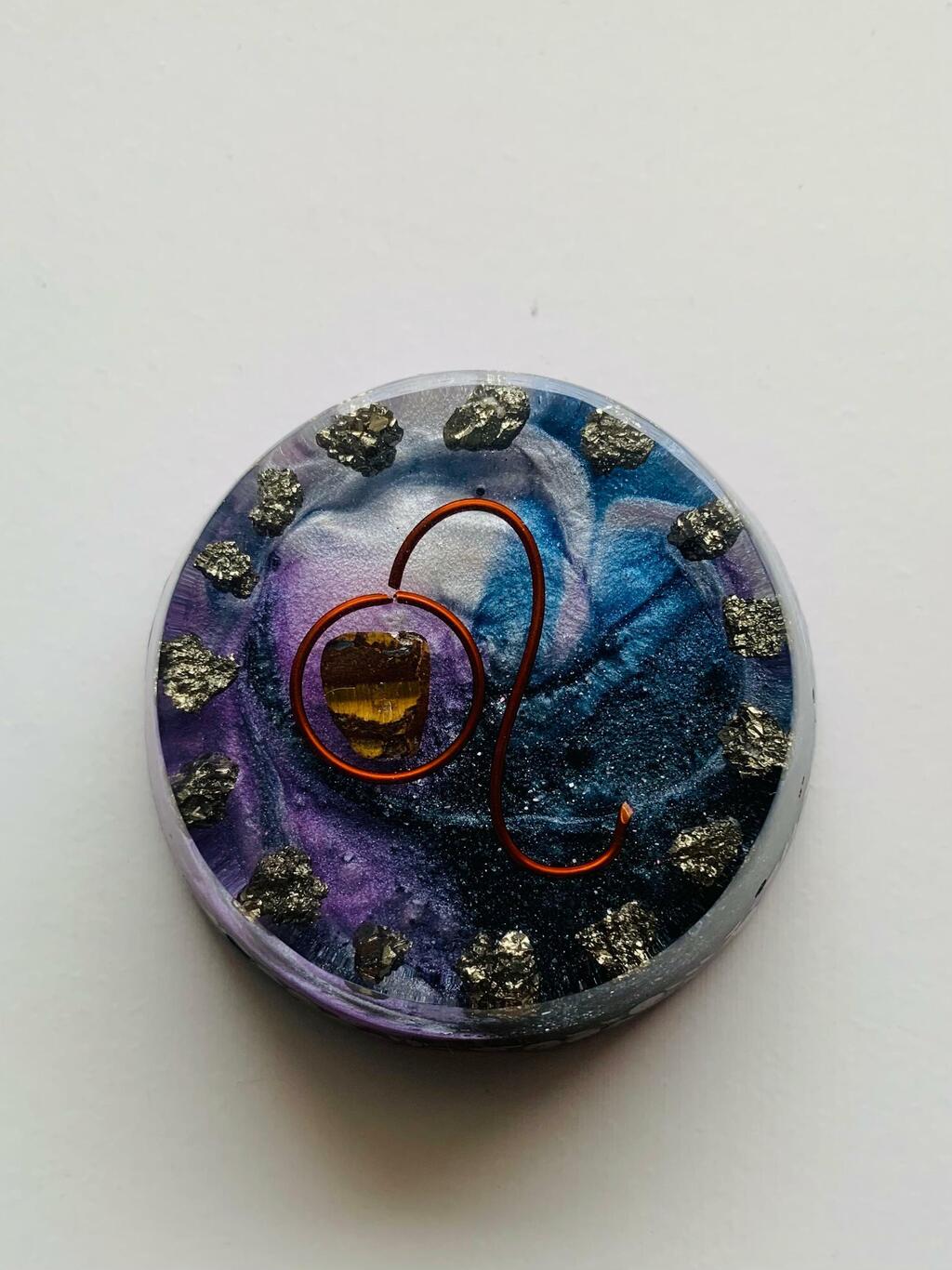 A orgonite é uma mistura poderosa de cristais, metais e resinas, criada para equilibrar e transformar energias. Sua composição favorece a transmutação de energias negativas em positivas, purificando ambientes e a aura pessoal, trazendo proteção, harmonia e vitalidade para quem usa.
