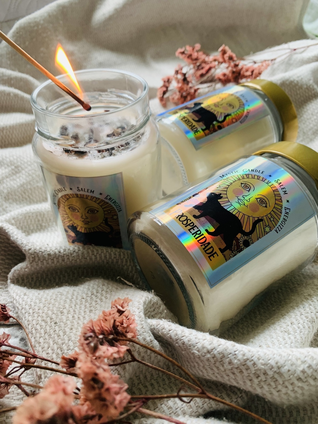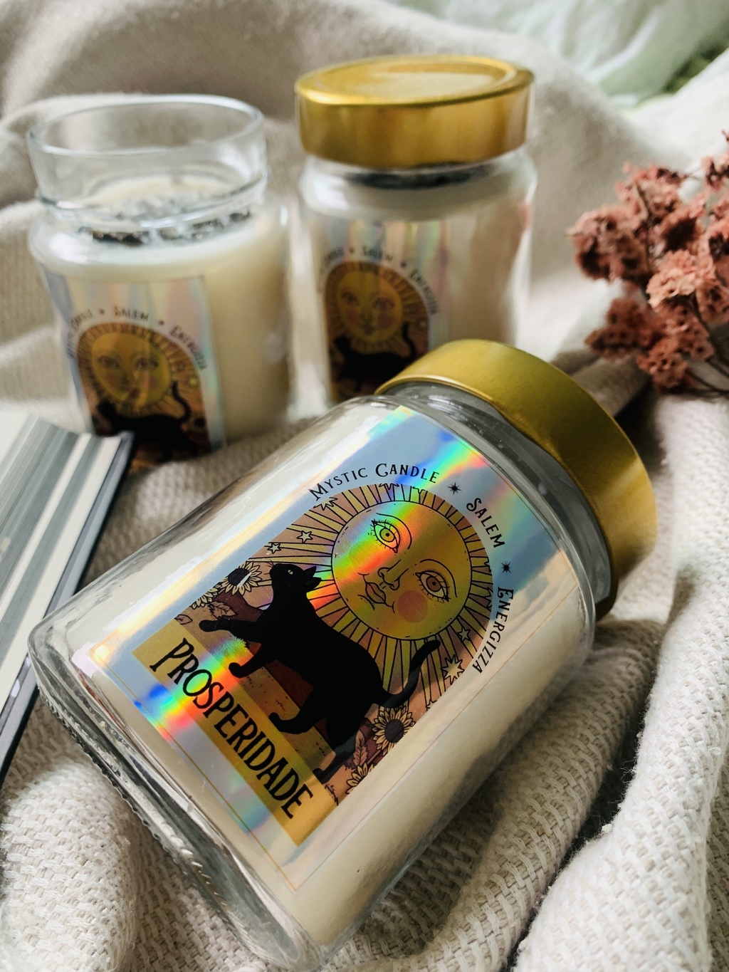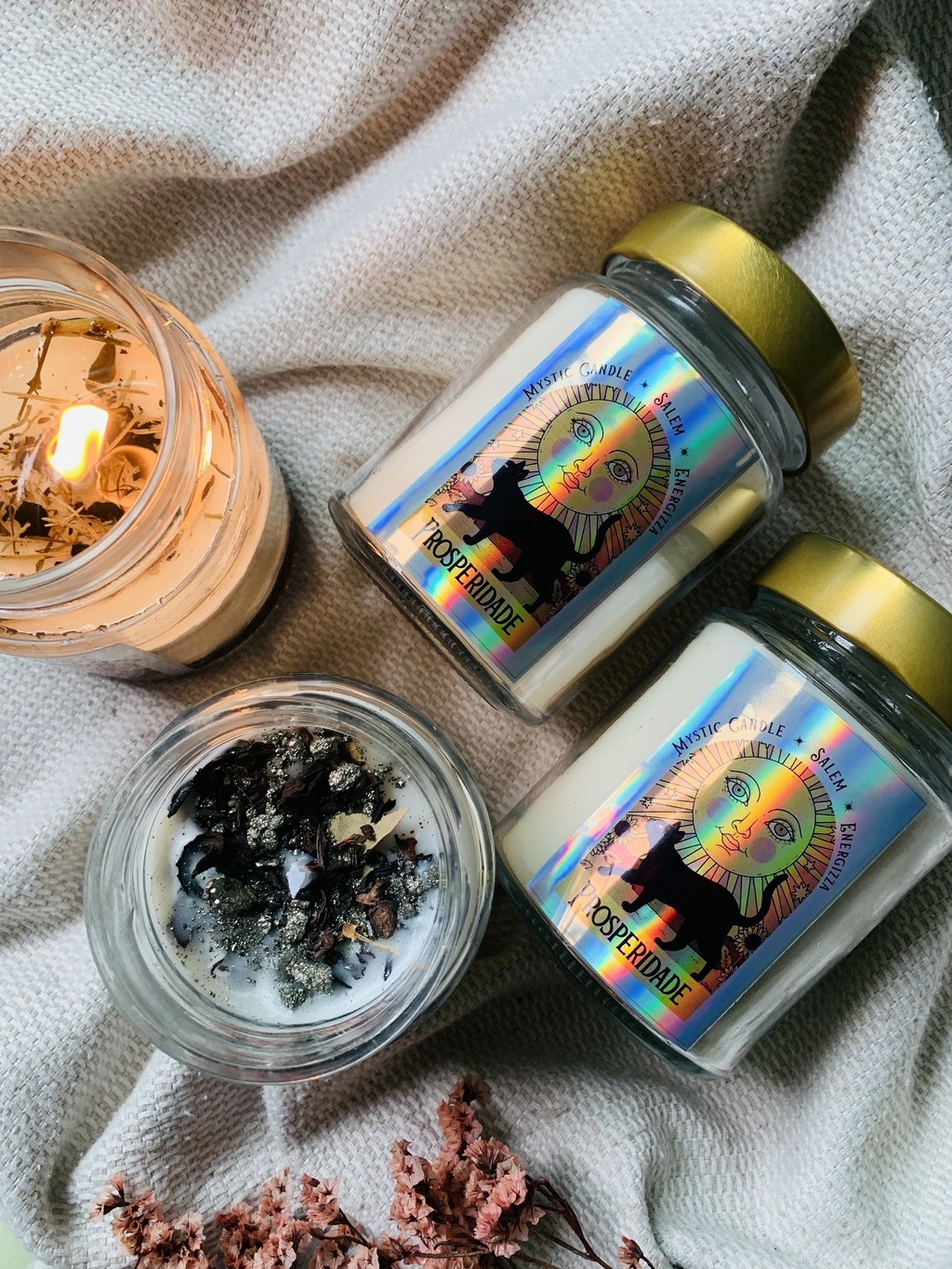 Salem é um pequeno gatinho preto que brinca com os astros e está sempre atento, guiando sua energia para onde ela mais é necessária. Sua vela de prosperidade une o poder da pirita — pedra sagrada de abundância e manifestação — com ervas ancestrais poderosas, como o louro e o hibisco, que ativam a coragem e impulsionam a capacidade de materializar seus sonhos.