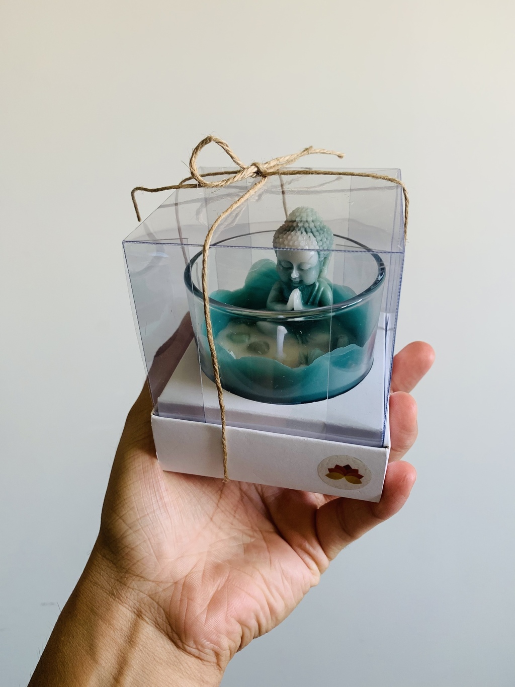 A coleção Aura traz velas únicas, feitas com cera de coco e um aroma fresco de cascas e folhas. Cada vela acompanha mini cristais, flores e um pequeno Buda também feito de cera de coco, formando um jardim de boas energias.